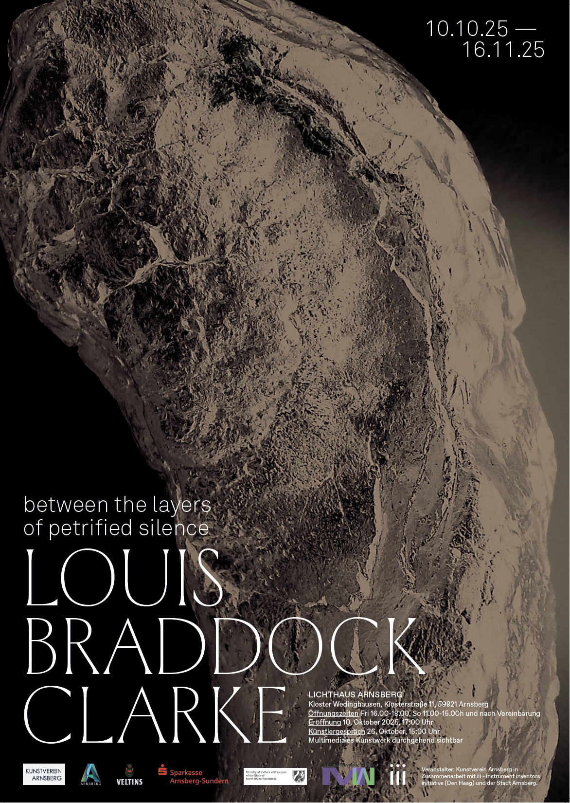 Der Kunstverein Arnsberg zeigt mit Between the Layers of Petrified Silence (“In den Schichten des versteinerten Schweigen”) die erste Einzelausstellung des britischen Künstlers Louis Braddock Clarke in Deutschland. Die für das Lichthaus Arnsberg entwickelten Arbeiten verbinden Geologie, Klang, Technologie und spekulative Forschung. In Zusammenarbeit mit Wissenschaftler:innen aus den Bereichen Meteorologie, Akustik, Geologie und Informatik schafft Braddock Clarke künstlerische Forschungsprojekte, die die unsichtbaren und unhörbaren Dimensionen unserer Umwelt greifbar und erfahrbar machen.