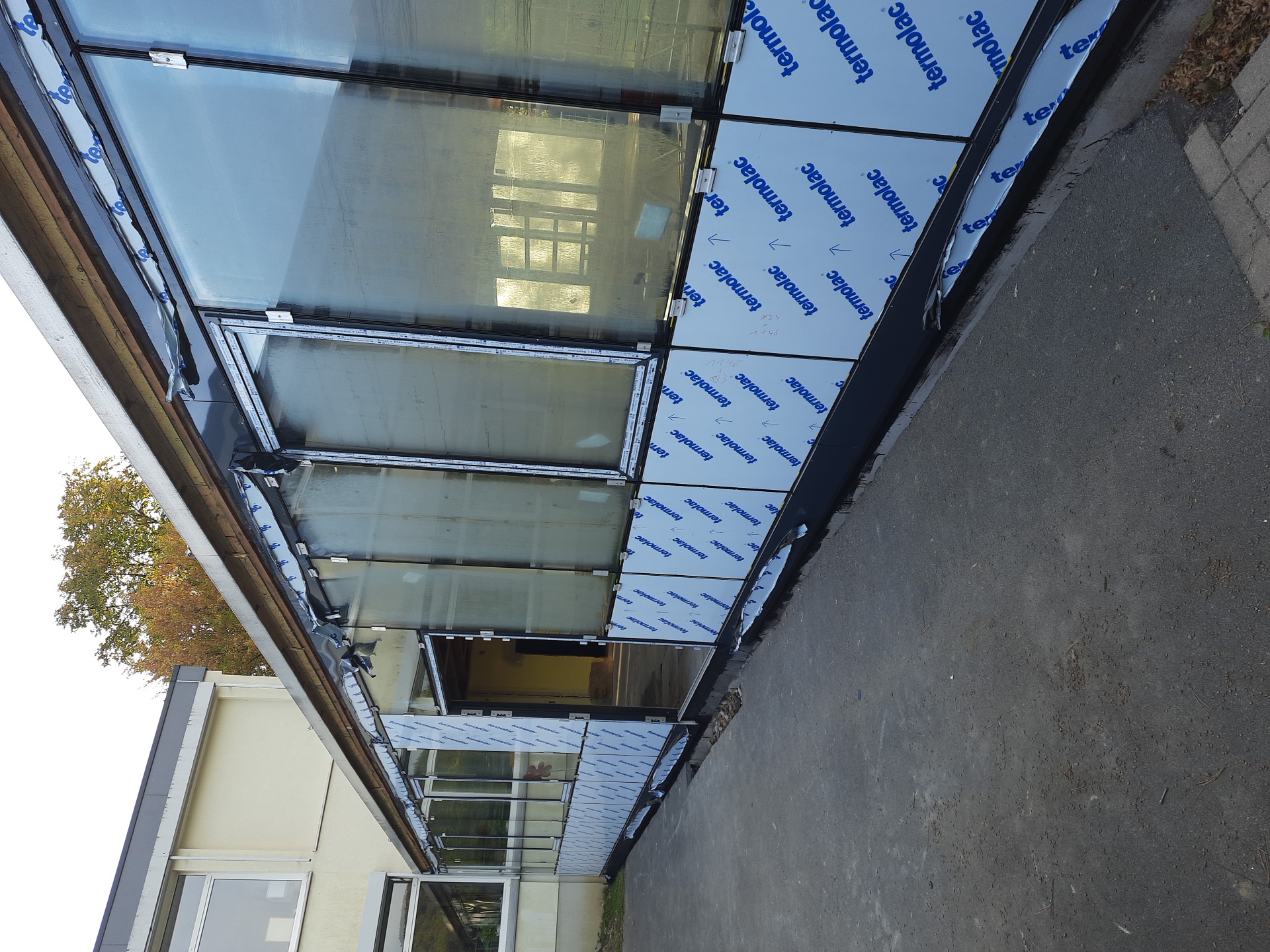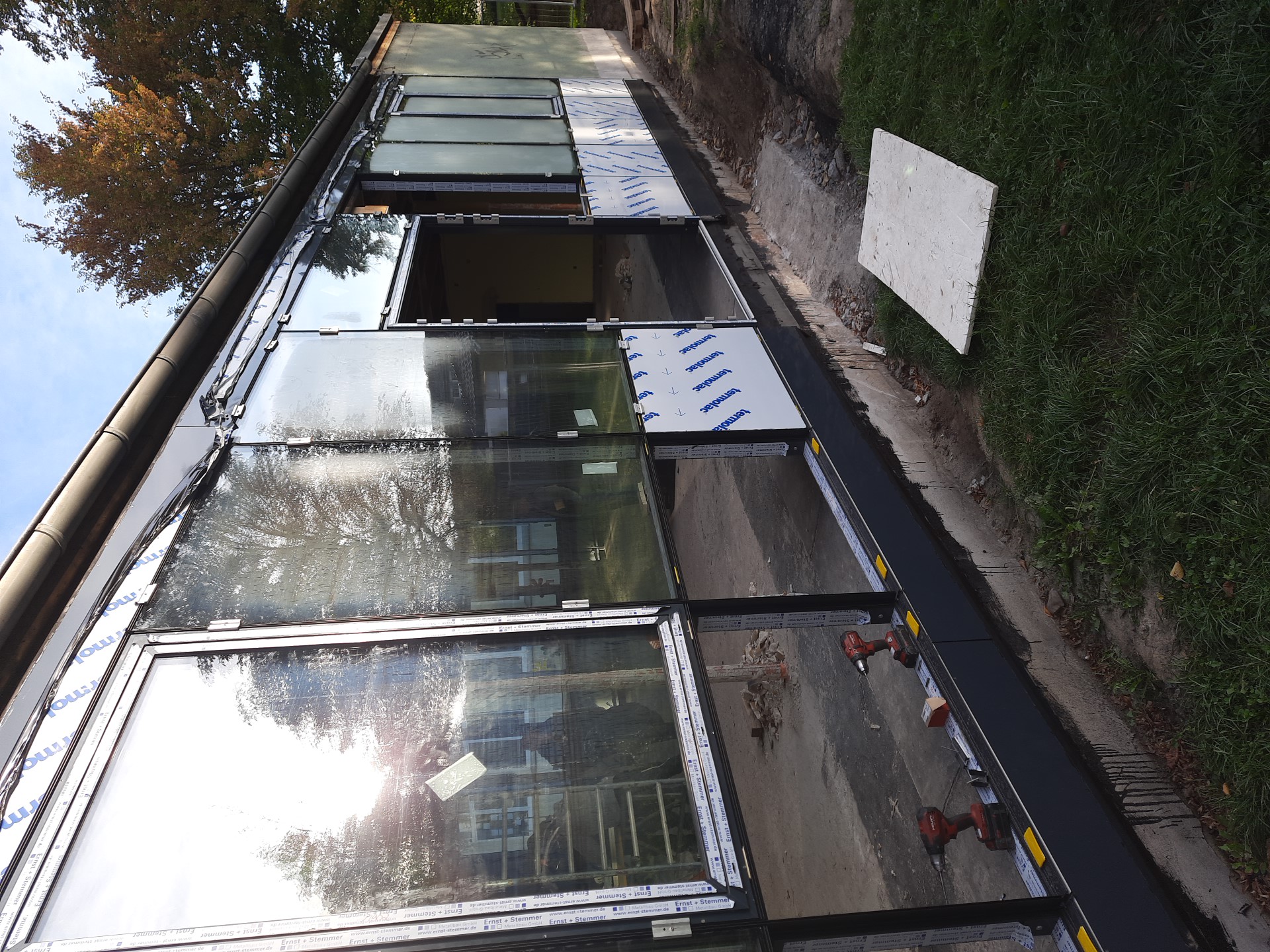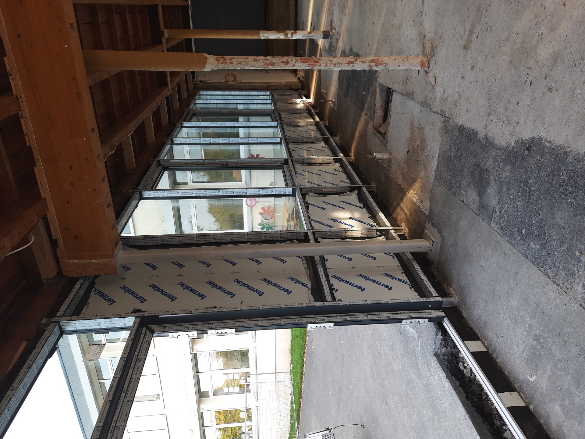 Ziel der Maßnahme ist es, die rund fünfzig Jahre alte Pausenhalle energetisch, statisch und technisch auf den heutigen Stand zu bringen. Nach der Entkernung des Bestands der Pausenhalle sind die Arbeiten für den Wiederaufbau seit gut acht Wochen in vollem Gange. Nach der Freilegung des Bestands wurden auch die Versorgungsleitungen der Heizung, die zugleich die angrenzende Turnhalle versorgt, technisch auf den heutigen Stand gebracht. Gegenwärtig laufen Arbeiten zur Sockeldämmung der Streifenfundamente, und die neue Alu-Glas-Fassade ist größtenteils fertiggestellt. In den nächsten Tagen wird mit der Erneuerung des Dachaufbaus begonnen. Anschließend wird mit den Estricharbeiten begonnen. Ziel ist es, das Bauvorhaben im 1. Quartal 2026 fertigzustellen.