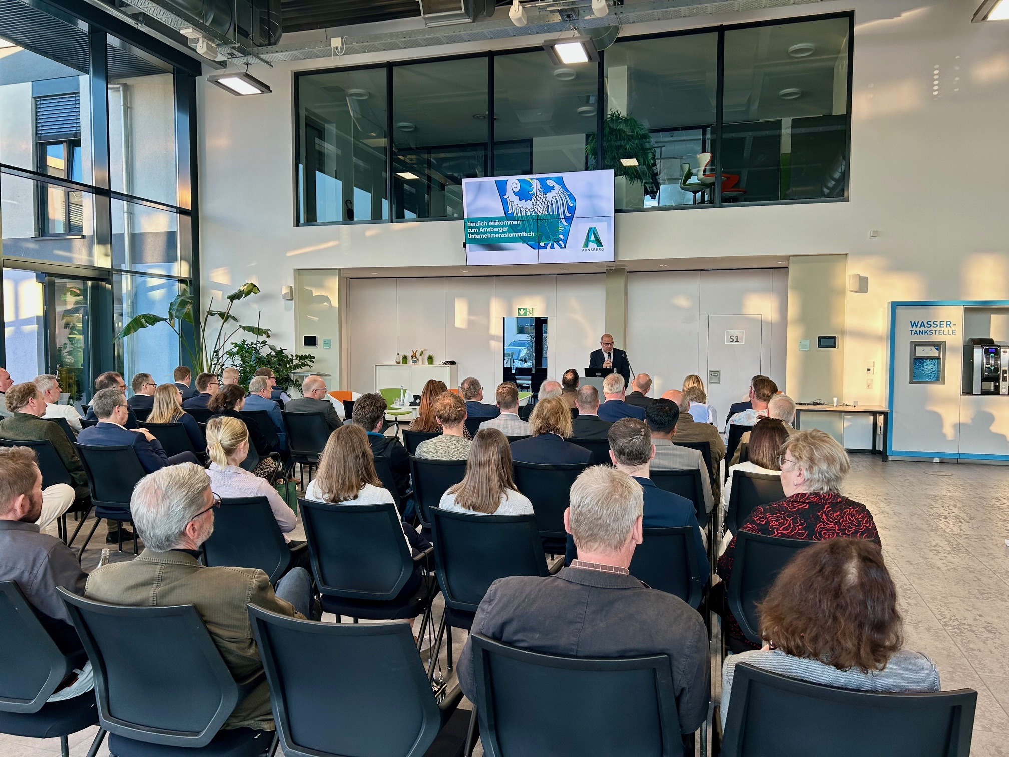 Wie sich die Situation der heimischen Wirtschaft derzeit darstellt und welche Erwartungen für die Zukunft herrschen, war Schwerpunkt des 10. Arnsberger Unternehmensstammtisches. Ralf Paul Bittner führte als Moderator durch die Veranstaltung und konnte hochkarätige Experten als Gesprächspartner_innen begrüßen: Zu Gast waren Anja Gröne-Nolte, Geschäftsführerin Handelsverband Nordrhein-Westfalen - Südwestfalen e.V., Jörg Nolte, IHK-Hauptgeschäftsführer Industrie- und Handelskammer Arnsberg, Hellweg-Sauerland sowie Prof. Dr. Volker Verch, Geschäftsführer Unternehmensverband Westfalen-Mitte. Gemeinsam beleuchteten sie die Wirtschaft im Lichte nationaler und internationaler Entwicklungen und blickten dabei konkret auf Arnsberger Themen.