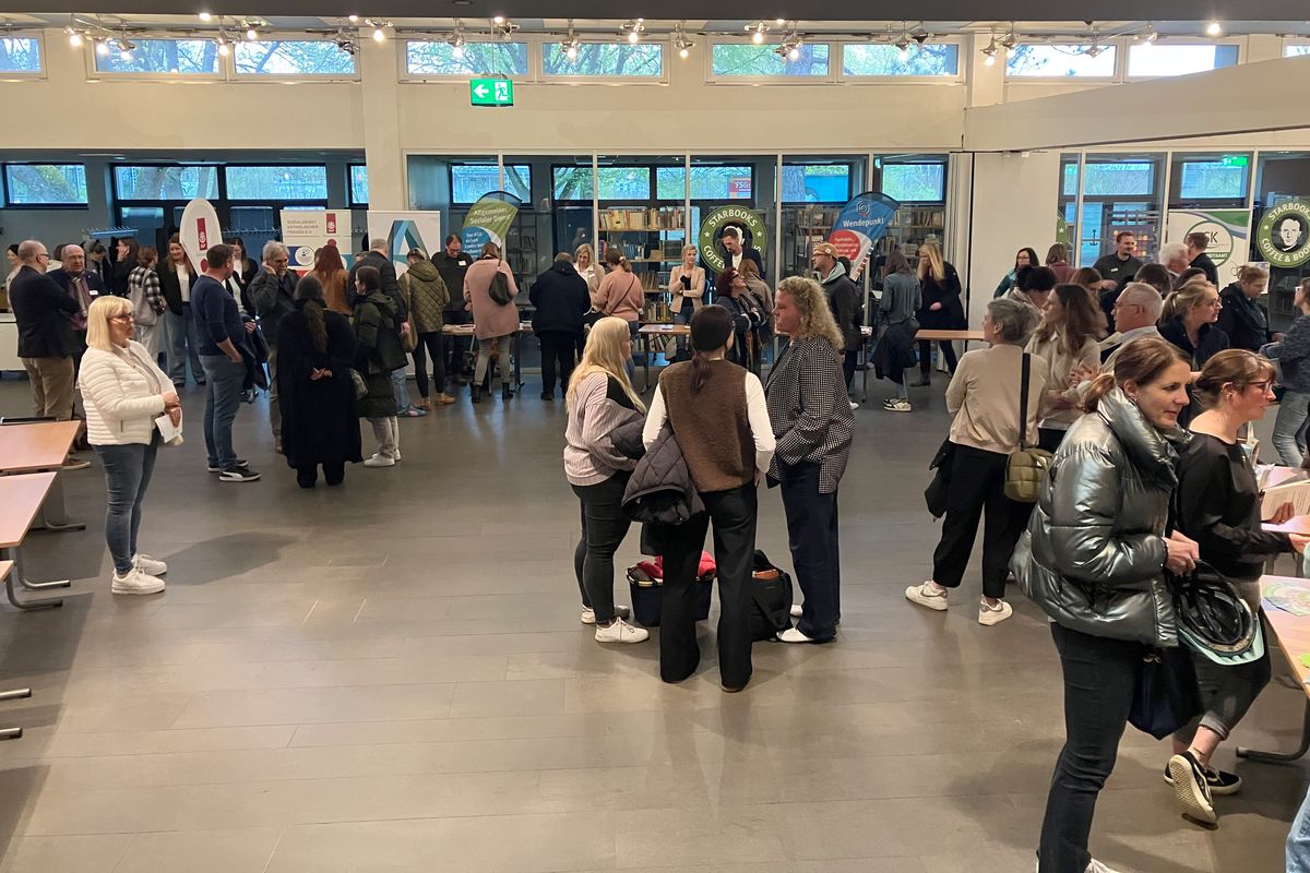 Im Foyer des Kulturzentrums Hüsten stellten sich zur Fachtagung zahlreiche Institutionen mit ihren Informationen zum Angebot vor und regten so einen fachlichen Austausch an.