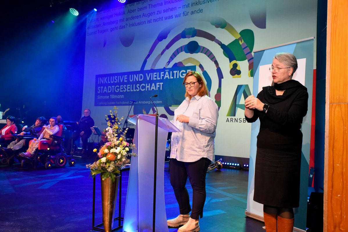 Und noch eine Preisvergabe stand im Zentrum des Jahresempfanges: Die Vergabe des 2. Inklusionspreises der Stadt Arnsberg gemeinsam mit der Stiftung Amt Hüsten, die von Stefanie Bierwagen von der städtischen Fachstelle für Behindertenhilfe und Inklusion moderiert wurde.