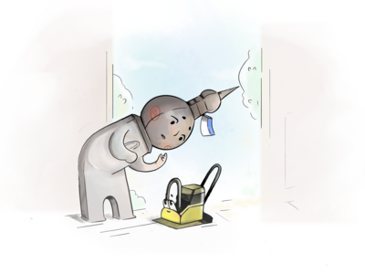 So nahm der Glockenturm seinen ganzen Mut zusammen und sprach die Rüttelplatte an: „Warum verbreitest du hier so viel Unruhe und wirbelst so viel Staub auf? Das bringt mich aus der Ruhe.“