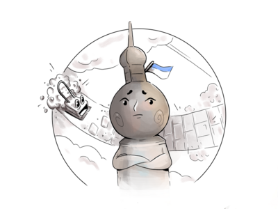 Der Turm wunderte sich, warum jemand in seiner schönen alten Stadt so viel Krach und Dreck machte.