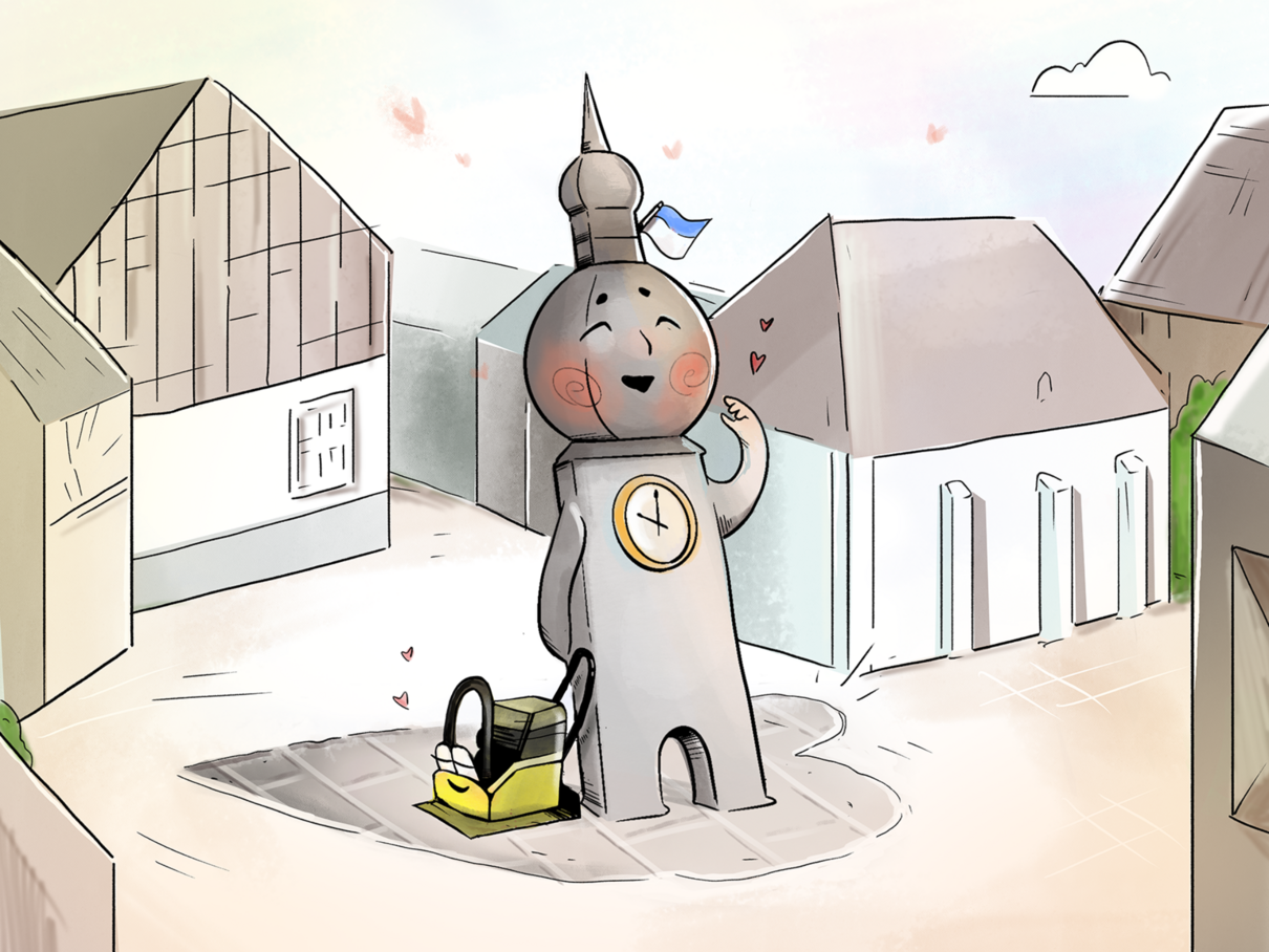 Die Rüttelplatte lehnte sich an den stattlichen Glockenturm an und flüsterte ihm zu, dass sie so aktiv war, um Arnsberg noch schöner und sicherer zu machen. Diese Fürsorge begeisterte den Turm so sehr, dass er die Rüttelplatte in sein Herz schloss. Er wollte von nun an jeden Tag mit ihr verbringen.